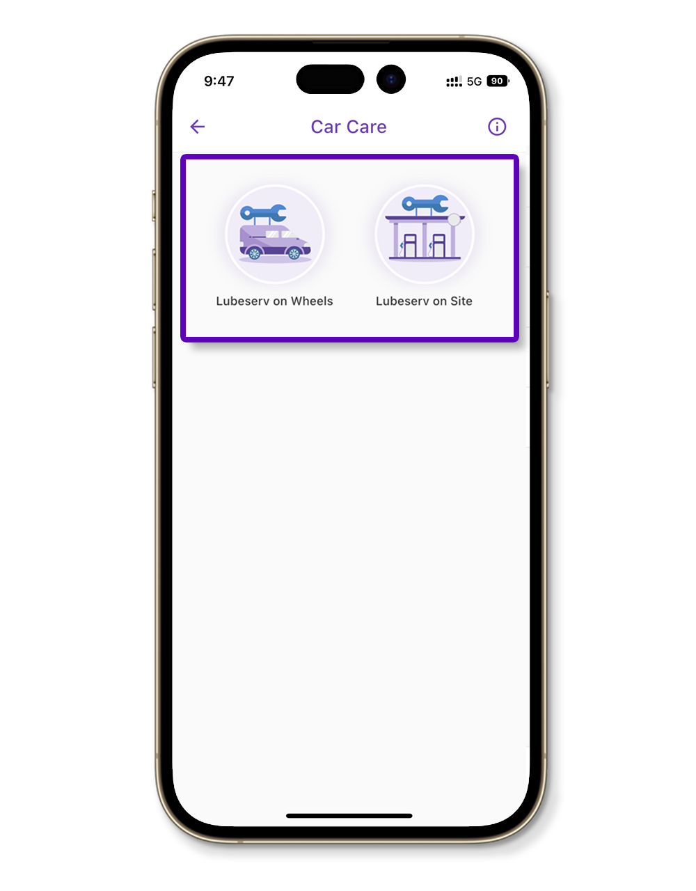 Step 2. Choose either Lubeserv on Wheels/Lubeserv on Site.