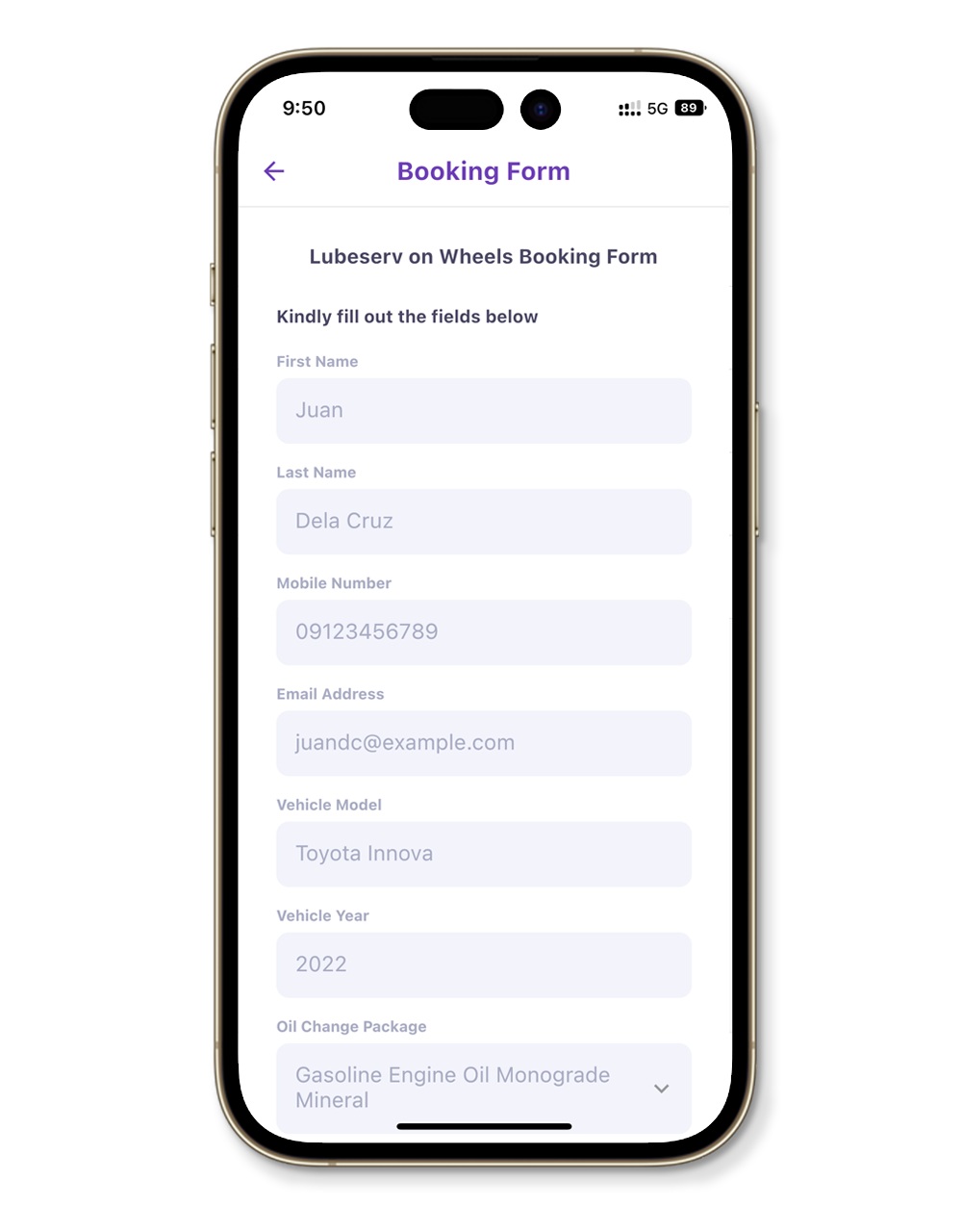 Step 4. Submit the Lubeserv on Wheels/Lubeserv on-Site booking form by clicking the Submit button.