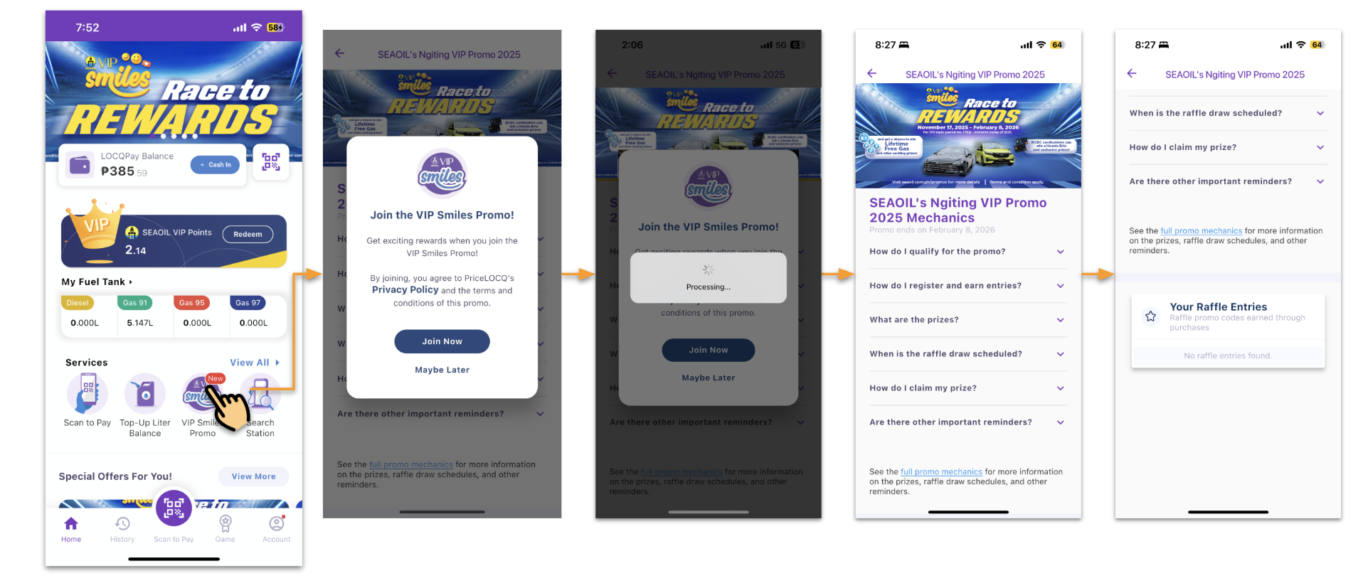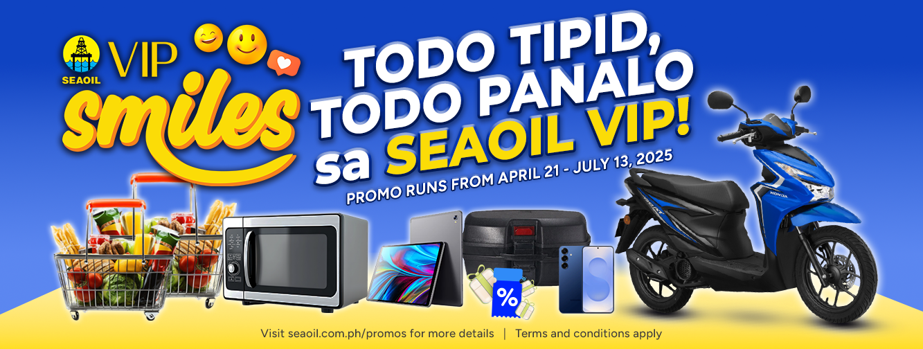 Pay for SEAOIL fuels, lubricants, and Lubeserv services through PriceLOCQ at any SEAOIL VIP-activated stations from November 17, 2025 - February 8, 2026 to qualify. You can earn entries by completing any of the ff. transactions: